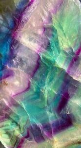 La couleur bleue est donnée par des cations d’ytrium Y+, la variété verte par des cations de samarium Sm’t. On pourrait l’appeler pierre de Maât, car elle apporte ordre et harmonie au chaos. Il est intéressant de travailler avec des cristaux naturels octaédriques. Sa teneur en fluor en fait un outil de guérison des problèmes osseux et de l’ostéoporose. On utilisera de préférence une fluorine verte que l’on apposera à la base de la colonne vertébrale pendant vingt minutes par jour. Elle sera également utile en cas de maladie d’Alzheimer, il faudra la porter sur soi toute la journée.